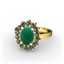 Kök zümrüt ve dumanlı kuvars 925 ayar altın kaplama gümüş yüzük