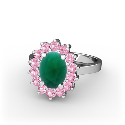 Kök zümrüt ve pembe kuvars 8 ayar beyaz altın yüzük