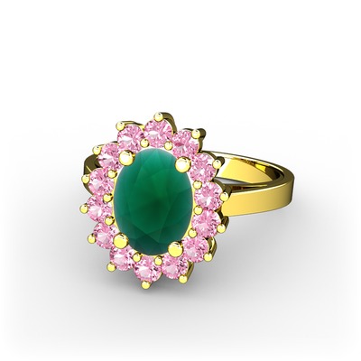 Kök zümrüt ve pembe kuvars 925 ayar altın kaplama gümüş yüzük