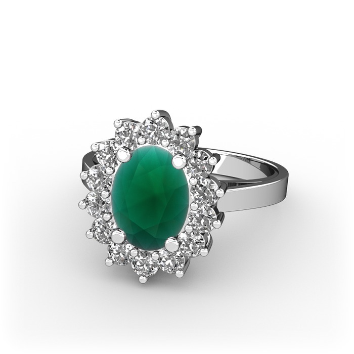 Kök zümrüt ve pırlanta 8 ayar beyaz altın yüzük (0.504 karat)