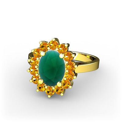 Kök zümrüt ve sitrin 18 ayar altın yüzük