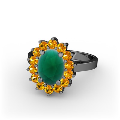 Kök zümrüt ve sitrin 925 ayar siyah rodyum kaplama gümüş yüzük