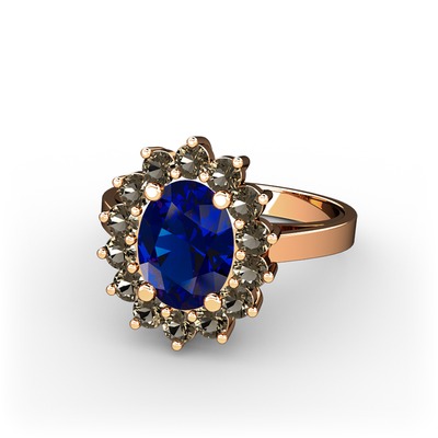 Lab safir ve dumanlı kuvars 8 ayar rose altın yüzük
