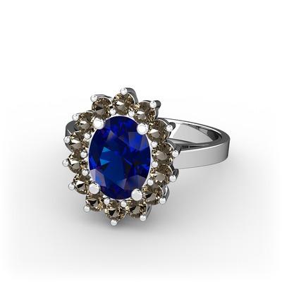 Lab safir ve dumanlı kuvars 925 ayar gümüş yüzük