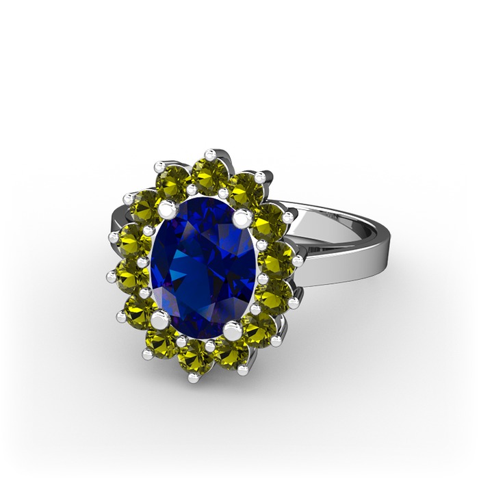 Lab safir ve peridot 14 ayar beyaz altın yüzük