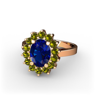 Lab safir ve peridot 925 ayar rose altın kaplama gümüş yüzük