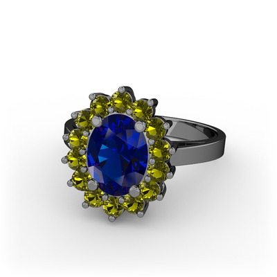 Lab safir ve peridot 925 ayar siyah rodyum kaplama gümüş yüzük