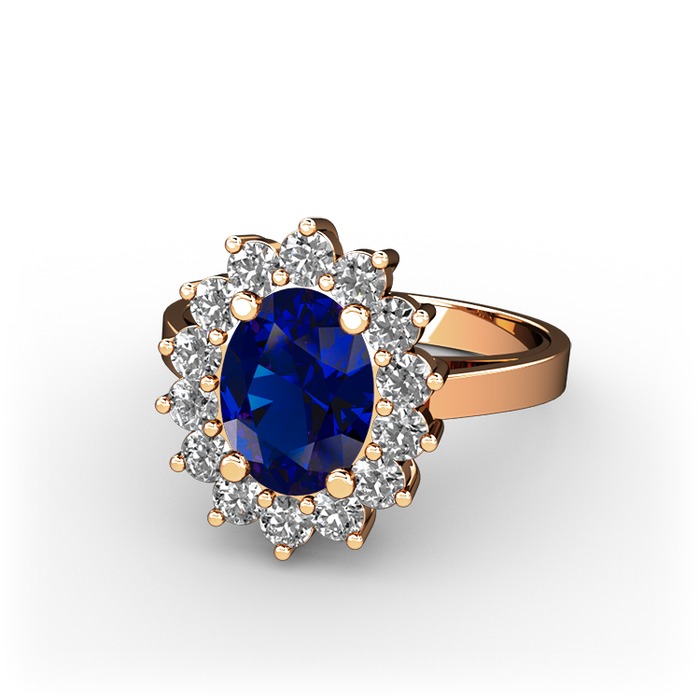 Lab safir ve pırlanta 14 ayar rose altın yüzük (0.504 karat)