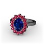 Lab safir ve rodolit garnet 925 ayar siyah rodyum kaplama gümüş yüzük