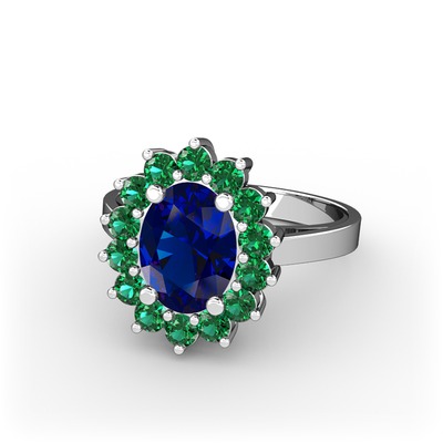 Lab safir ve yeşil kuvars 8 ayar beyaz altın yüzük