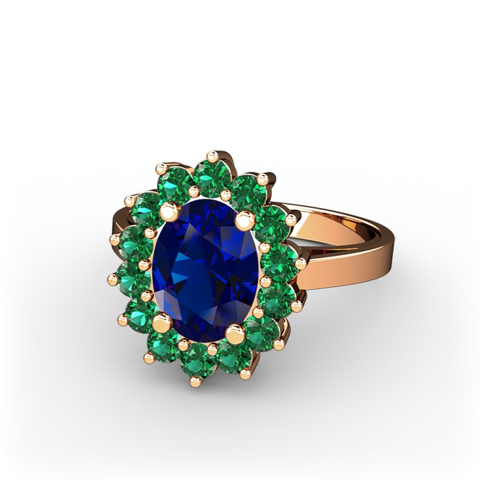 Lab safir ve yeşil kuvars 925 ayar rose altın kaplama gümüş yüzük