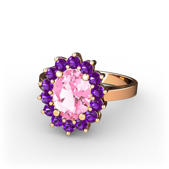 Pembe kuvars ve ametist 8 ayar rose altın yüzük