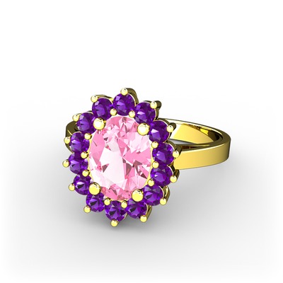 Pembe kuvars ve ametist 925 ayar altın kaplama gümüş yüzük