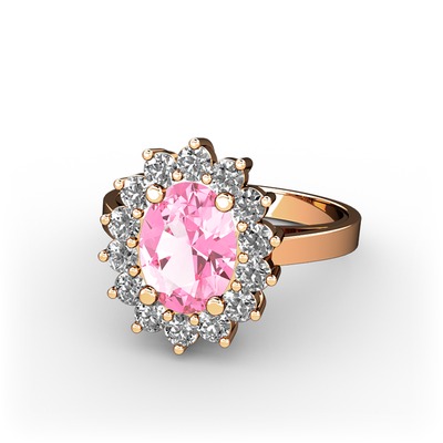 Pembe kuvars ve beyaz zirkon 925 ayar rose altın kaplama gümüş yüzük