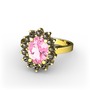 Pembe kuvars ve dumanlı kuvars 14 ayar altın yüzük