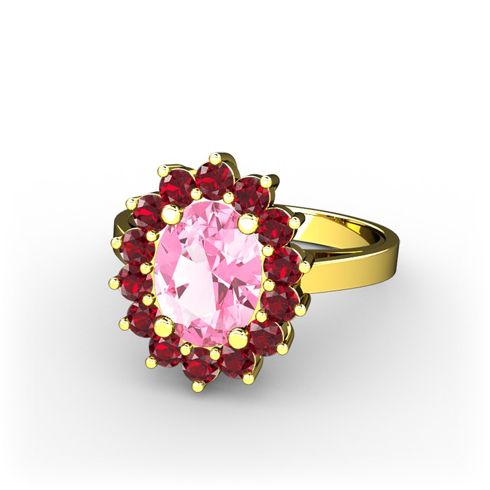 Pembe kuvars ve garnet 925 ayar altın kaplama gümüş yüzük