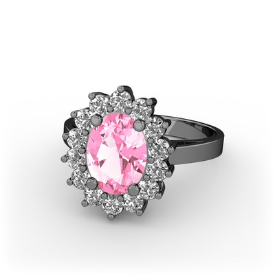 Pembe kuvars ve pırlanta 925 ayar siyah rodyum kaplama gümüş yüzük (0.504 karat)