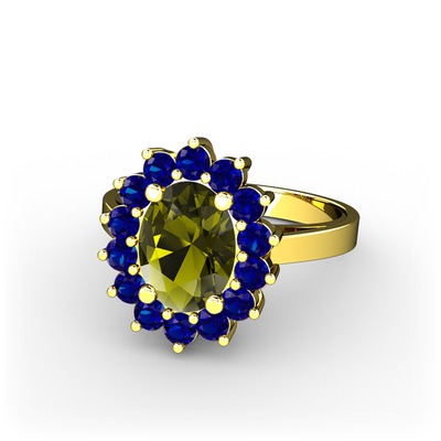 Peridot ve lab safir 925 ayar altın kaplama gümüş yüzük