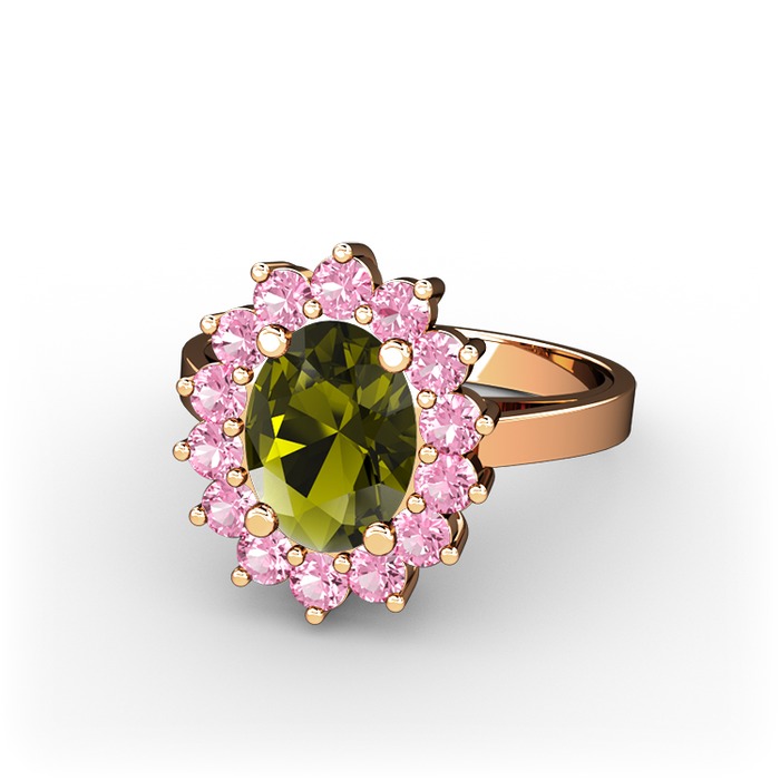 Peridot ve pembe kuvars 8 ayar rose altın yüzük