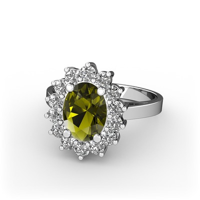 Peridot ve pırlanta 8 ayar beyaz altın yüzük (0.504 karat)