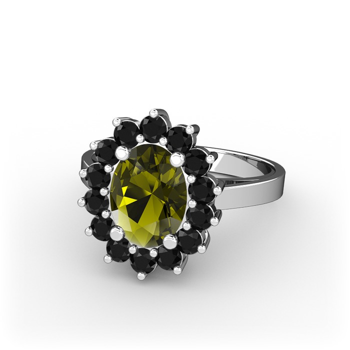 Peridot ve siyah zirkon 8 ayar beyaz altın yüzük