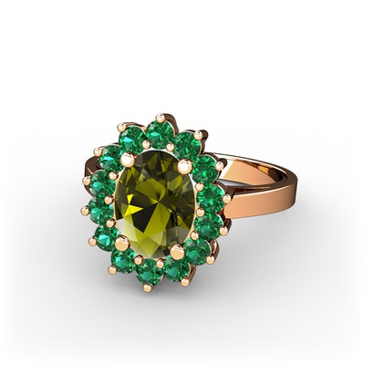 Peridot ve yeşil kuvars 925 ayar rose altın kaplama gümüş yüzük