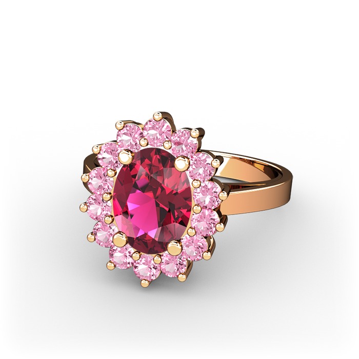 Rodolit garnet ve pembe kuvars 14 ayar rose altın yüzük