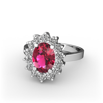 Rodolit garnet ve pırlanta 925 ayar gümüş yüzük (0.504 karat)
