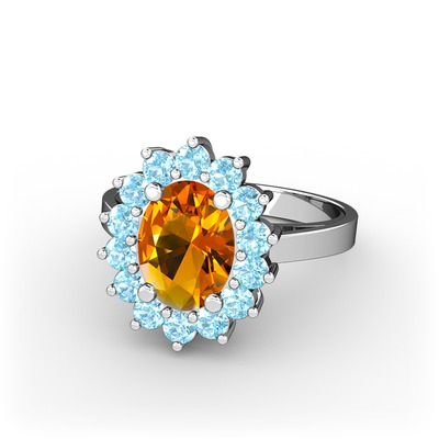 Sitrin ve akuamarin 14 ayar beyaz altın yüzük