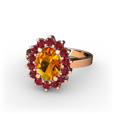Sitrin ve garnet 18 ayar rose altın yüzük