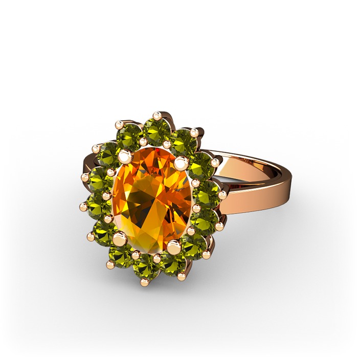 Sitrin ve peridot 925 ayar rose altın kaplama gümüş yüzük