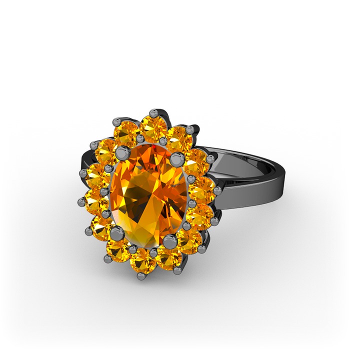 Sitrin 925 ayar siyah rodyum kaplama gümüş yüzük
