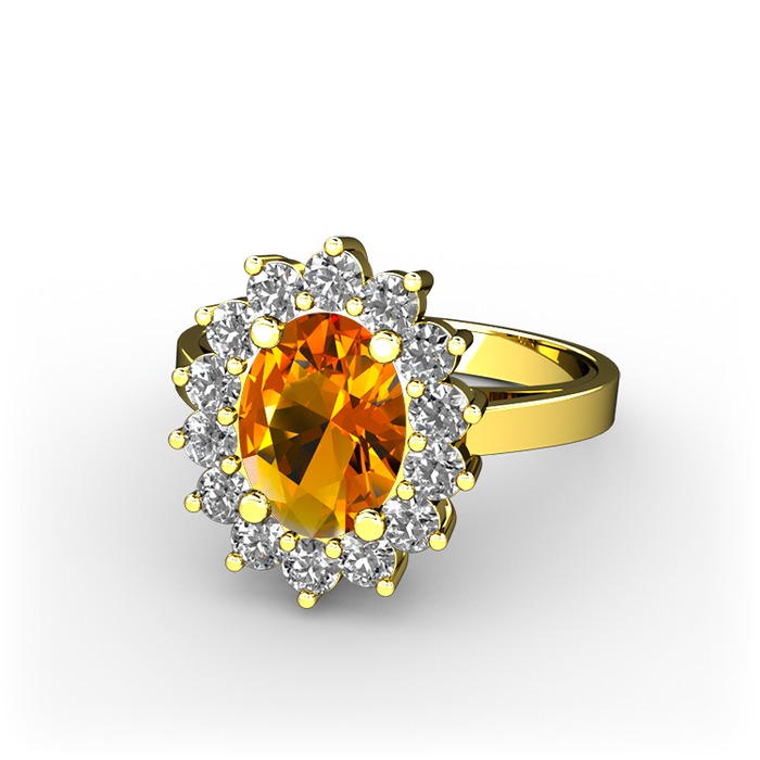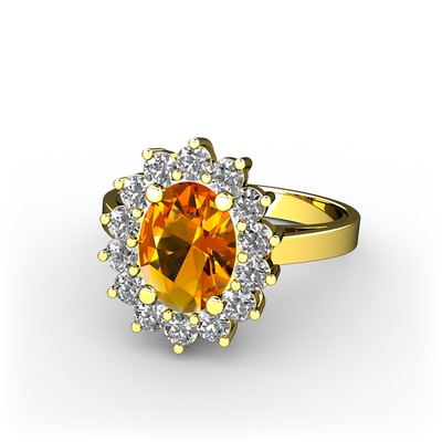Sitrin ve swarovski 925 ayar altın kaplama gümüş yüzük