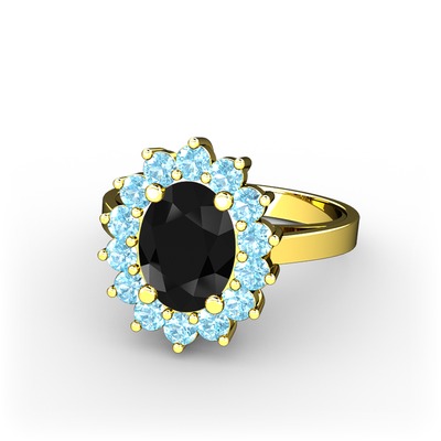Siyah zirkon ve akuamarin 925 ayar altın kaplama gümüş yüzük