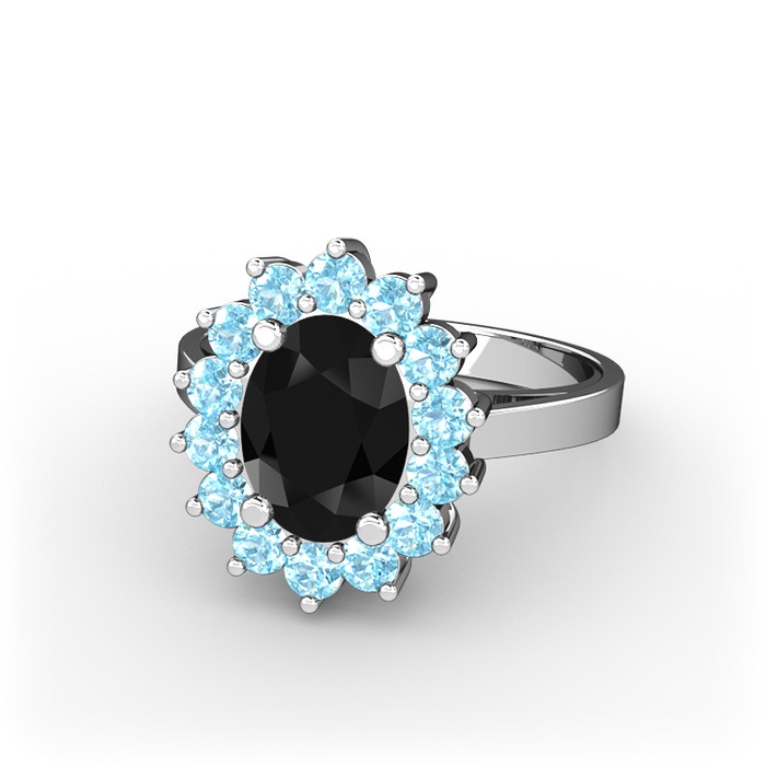 Siyah zirkon ve akuamarin 925 ayar gümüş yüzük