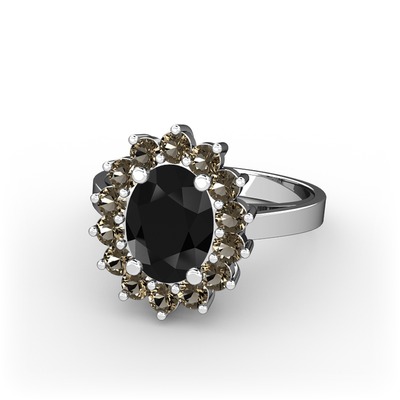 Siyah zirkon ve dumanlı kuvars 14 ayar beyaz altın yüzük