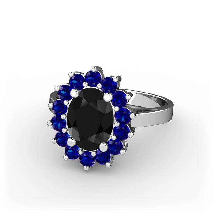 Siyah zirkon ve lab safir 14 ayar beyaz altın yüzük