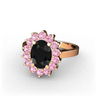 Siyah zirkon ve pembe kuvars 18 ayar rose altın yüzük
