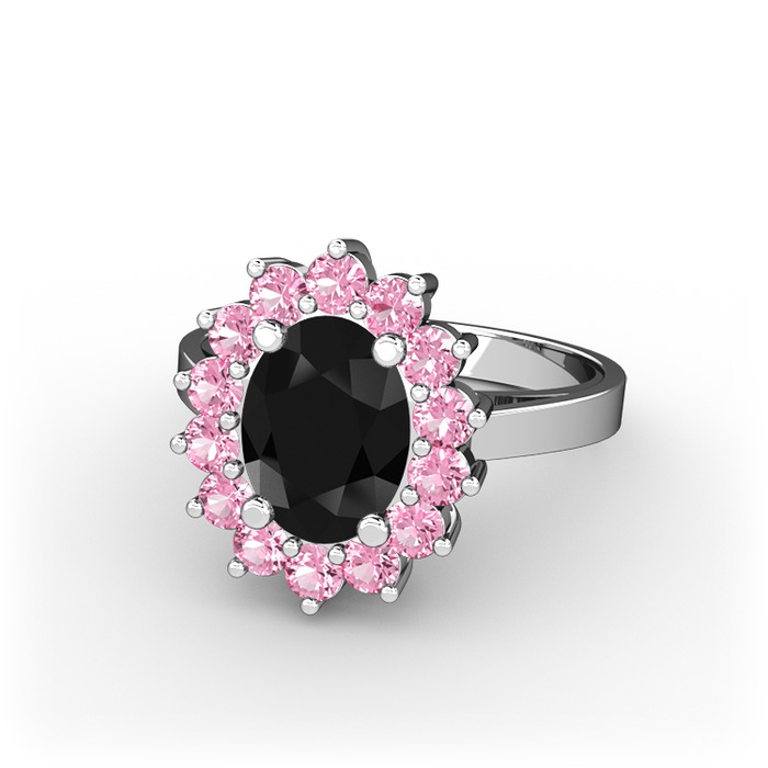 Siyah zirkon ve pembe kuvars 8 ayar beyaz altın yüzük