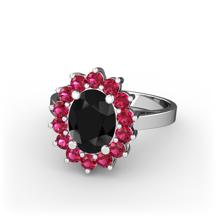 Siyah zirkon ve rodolit garnet 14 ayar beyaz altın yüzük