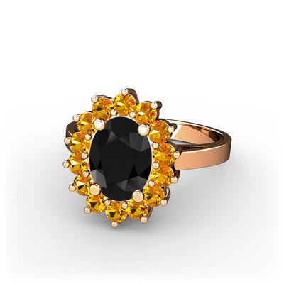 Siyah zirkon ve sitrin 18 ayar rose altın yüzük