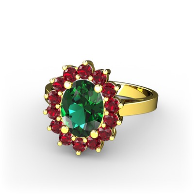 Yeşil kuvars ve garnet 14 ayar altın yüzük