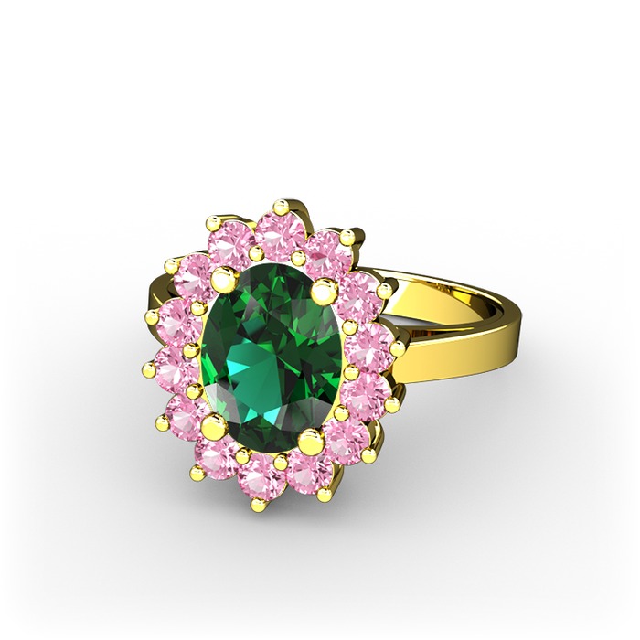 Yeşil kuvars ve pembe kuvars 14 ayar altın yüzük
