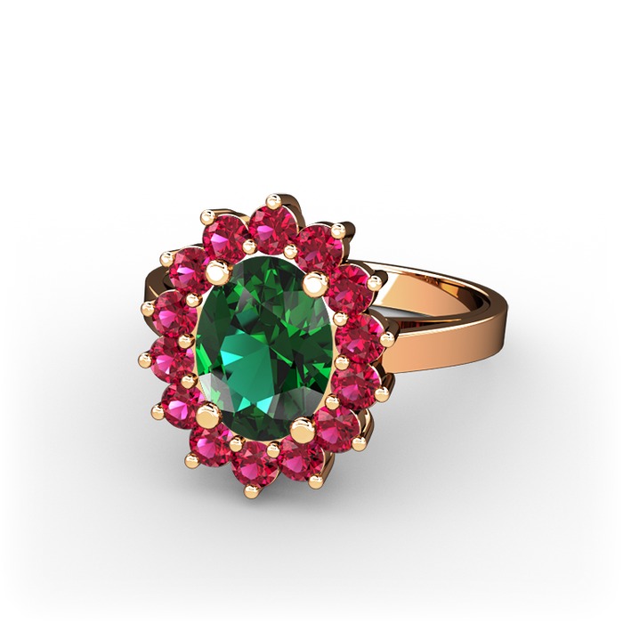Yeşil kuvars ve rodolit garnet 18 ayar rose altın yüzük