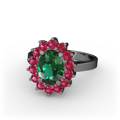 Yeşil kuvars ve rodolit garnet 925 ayar siyah rodyum kaplama gümüş yüzük