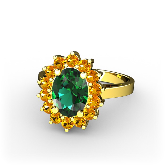 Yeşil kuvars ve sitrin 18 ayar altın yüzük