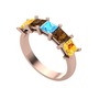 Akuamarin, dumanlı kuvars ve sitrin 925 ayar rose altın kaplama gümüş yüzük