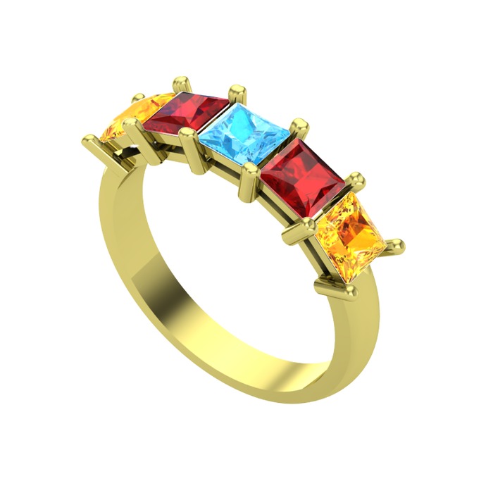 Akuamarin, garnet ve sitrin 18 ayar altın yüzük