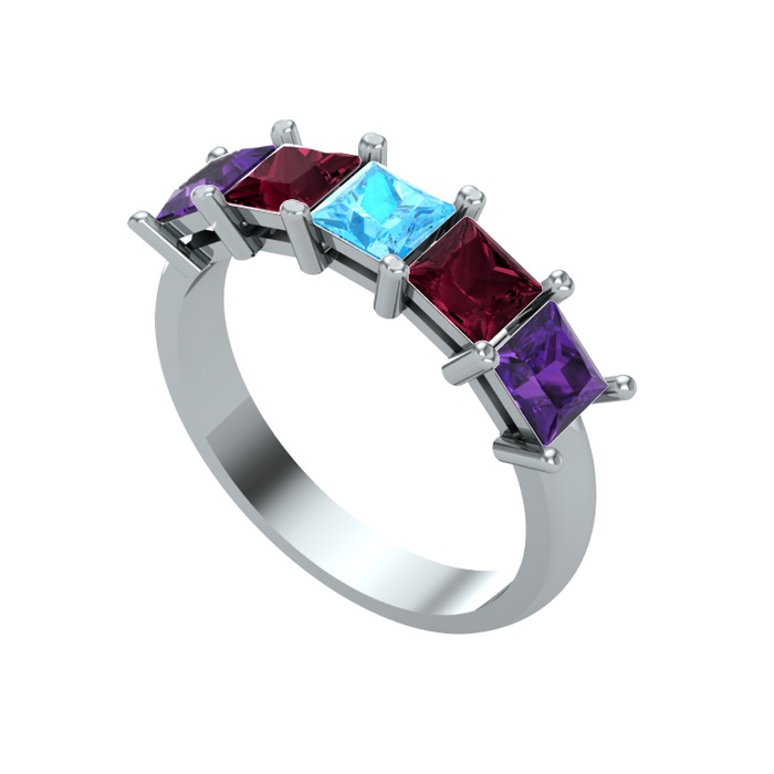 Akuamarin, kök yakut ve ametist 18 ayar beyaz altın yüzük