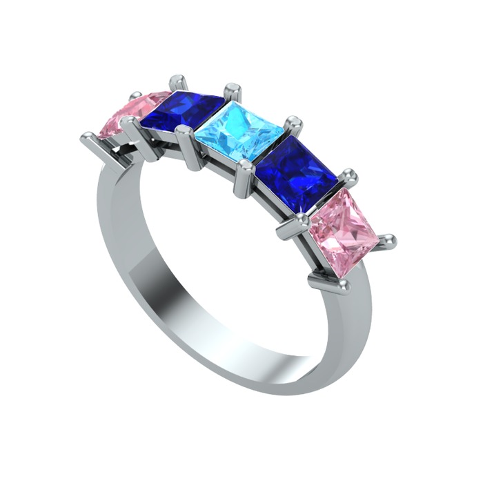 Akuamarin, lab safir ve pembe kuvars 925 ayar gümüş yüzük